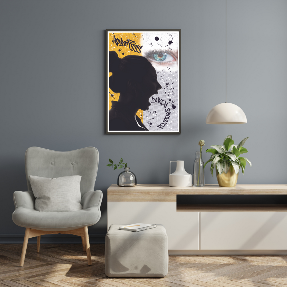Black and yellow woman street art wall art. This Graffiti Print is the perfect cute wall art for your kitchen, living room, den, music room, or wherever a little spark of color and personality is needed!